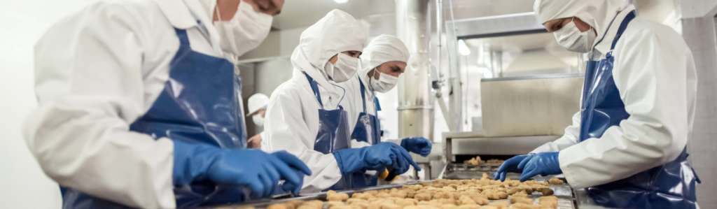 Food factory conveyor belt similar to what would be in an SQF certified facility.